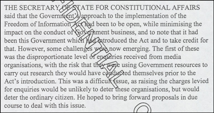 Falconer did not appear to be happy generally with the media’s use of FOI, as he told the cabinet on another occasion.