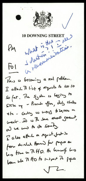 He told Blair: “The system is beginning to seize up - Private office, duty clerks etc - costing us nearly £20,000 a week. It is the same across government, and we need to do something.”